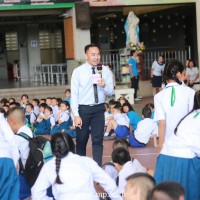 กลุ่มสาระภาษาต่างประเทศ (ภาษาอังกฤษ) จัดกิจกรรม English Day ให้กับนักเรียนทุกวันอังคารตอนเช้า หลังเคารพธงชาติ โดยกิจกรรมในวันอังคารที่ 19 มิถุนายน 2561 สอนการใช้ประโยค และบทสนทนาในชีวิตประจำวัน โดยครูชาวต่างชาติ กิจกรรมในครั้งนี้ได้รับความสนใจ และความร่วมมือจากนักเรียนทุกระดับชั้นเป็นอย่างดี |
