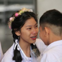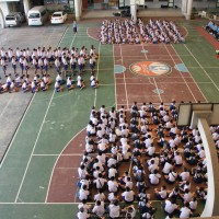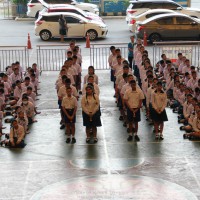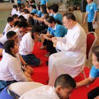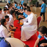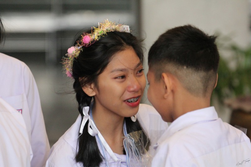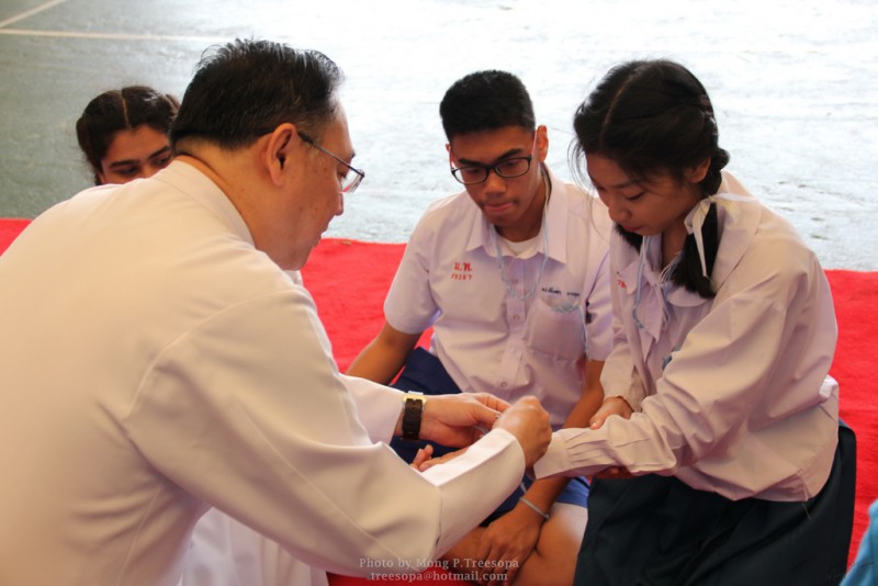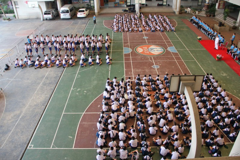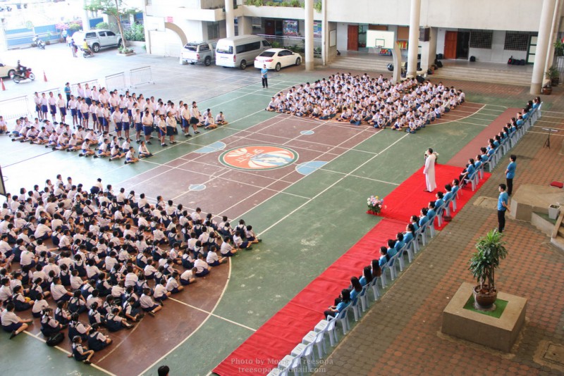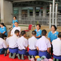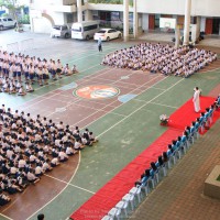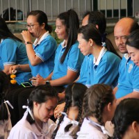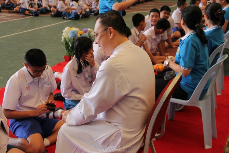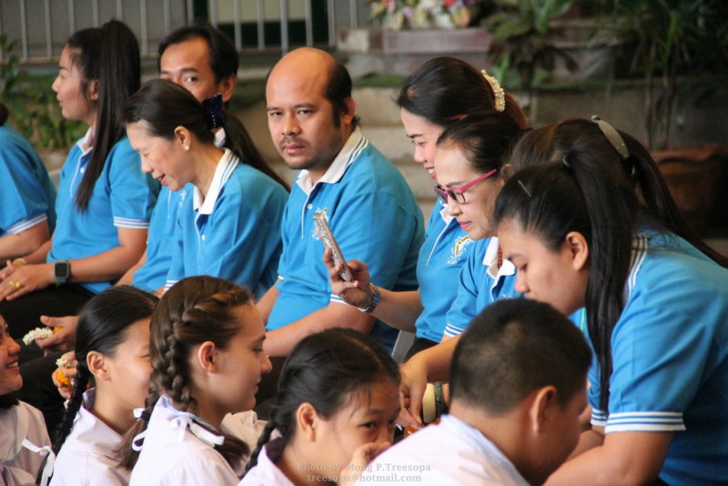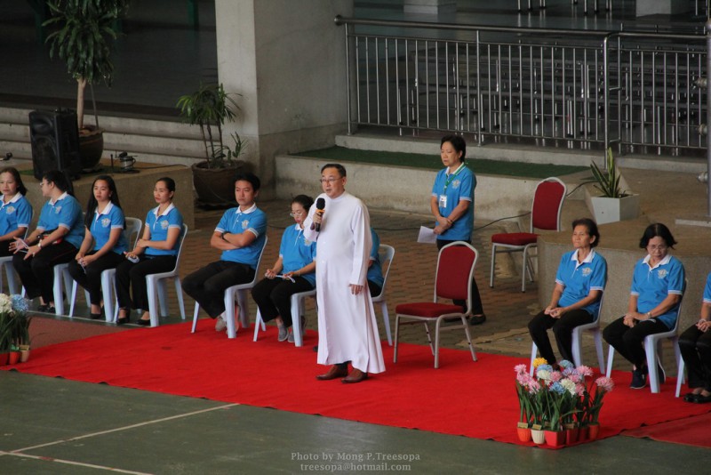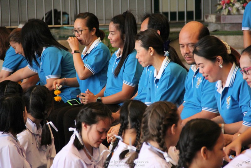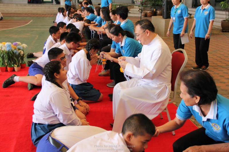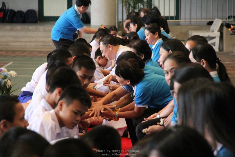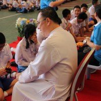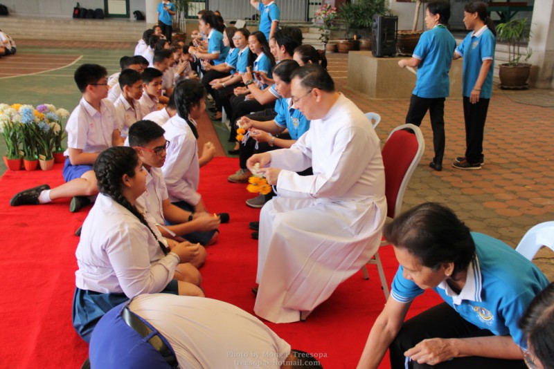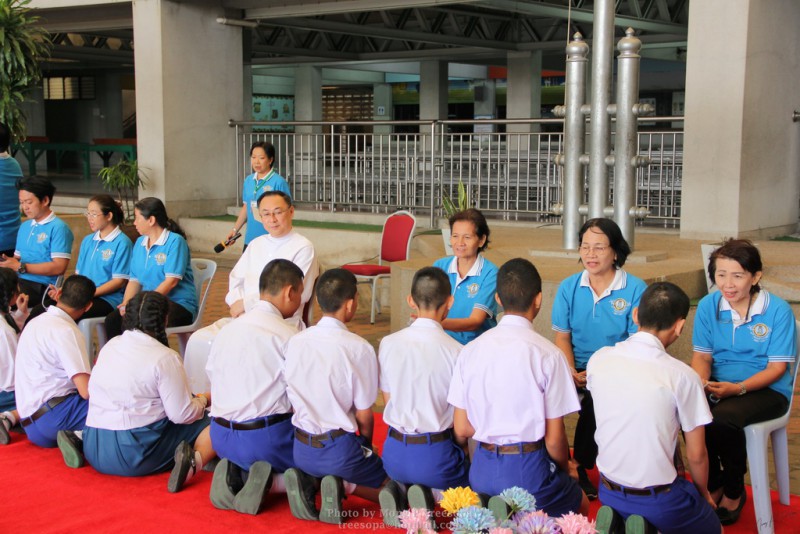 ณ สนามของโรงเรียน แสดงความกตัญญูกตเวทีและขอขมาต่อคุณพ่อ คุณครู
