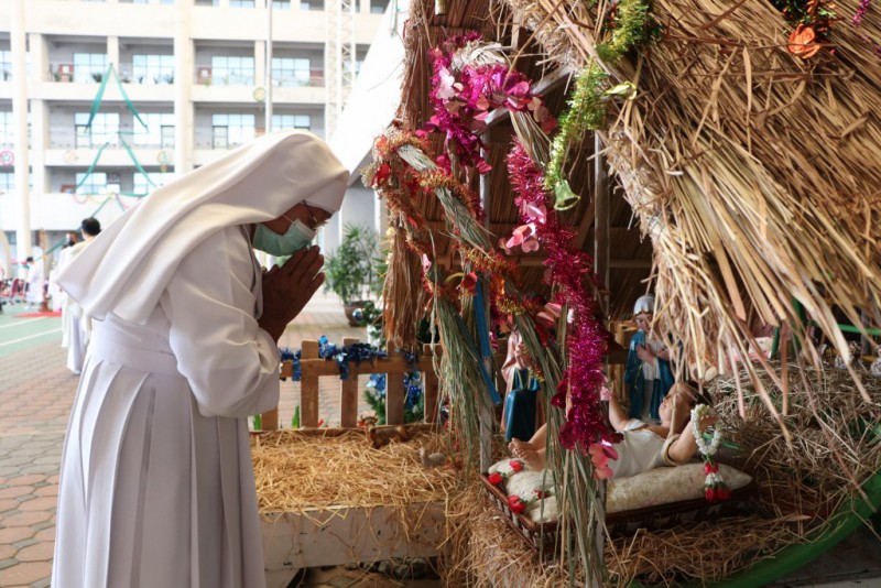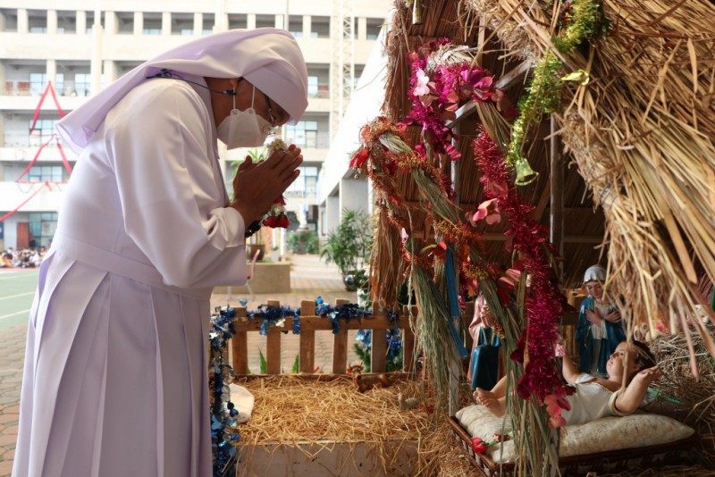 เริ่มด้วยพิธีบูชามิสซาสมโภชพระคริสตสมภพ นักเรียนชั้นมัธยมศึกษาปีที่1-3 และช่วงชั้นที่ 1 เป็นตัวแทนร่วมพิธีที่สนาม ระดับช่วงชั้นที่ 2 ร่วมมิสซาออนไลน์