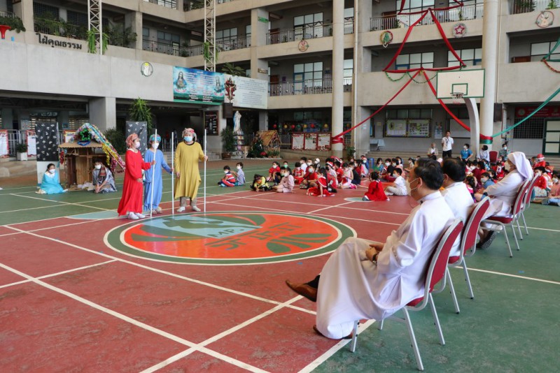 เริ่มด้วยพิธีบูชามิสซาสมโภชพระคริสตสมภพ นักเรียนชั้นมัธยมศึกษาปีที่1-3 และช่วงชั้นที่ 1 เป็นตัวแทนร่วมพิธีที่สนาม ระดับช่วงชั้นที่ 2 ร่วมมิสซาออนไลน์