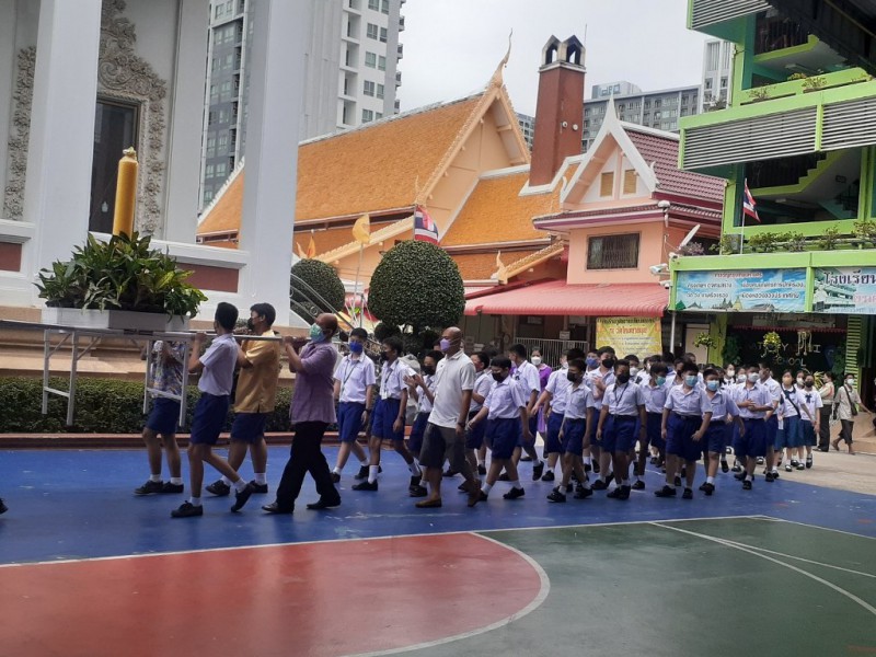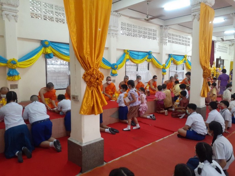 วันที่ 12 กรกฏาคม 2565 เวลา 08.30 น. ฝ่ายกิจการนักเรียน โรงเรียนแม่พระประจักษ์ จัดทำโครงการแห่เทียนพรรษา โดยนำต้นเทียนพรรษา พร้อมทั้งจตุปัจจัย และเครื่องไทยธรรม ไปถวายให้กับวัดใหม่ยายนุ้ย โดยมีวัตถุประสงค์เพื่อให้นักเรียนรู้จักการรัก และการแบ่งปัน สร้างความสัมพันธ์อันดีระหว่างโรงเรียนกับชุมชน ให้นักเรียนได้เห็นถึงความสำคัญของพระพุทธศาสนา และขนบธรรมเนียมประเพณีอันดีงามของคนไทย ทางโรงเรียนต้องขอขอบคุณผู้ปกครองทุกท่าน ที่ได้ร่วมเป็นส่วนหนึ่งในกิจกรรมในครั้งนี้ |