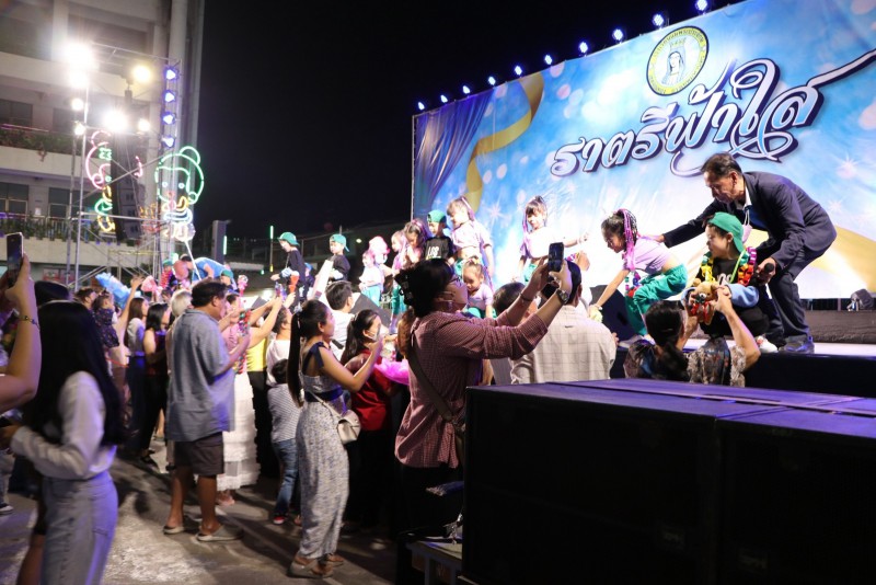 นักเรียนได้แสดงความสามารถบนเวที อันเป็นส่วนหนึ่งในการส่งเสริมทักษะความสามารถ นอกจากนั้นยังเป็นการสร้างบรรยากาศของการมีส่วนร่วมระหว่างครู ผู้ปกครอง นักเรียนและศิษย์เก่าจะได้มีโอกาสพบปะสังสรรค์ และรับประทานอาหารร่วมกัน จึงได้จัดงานราตรีฟ้าใสขึ้น |