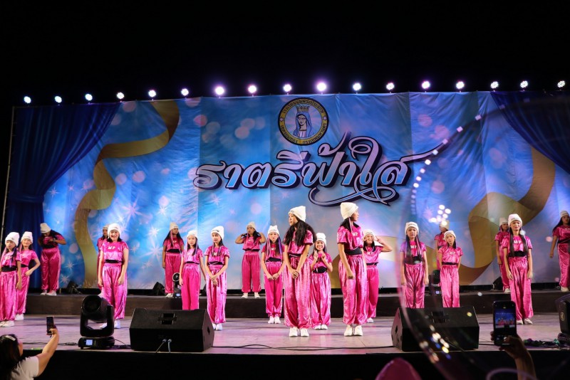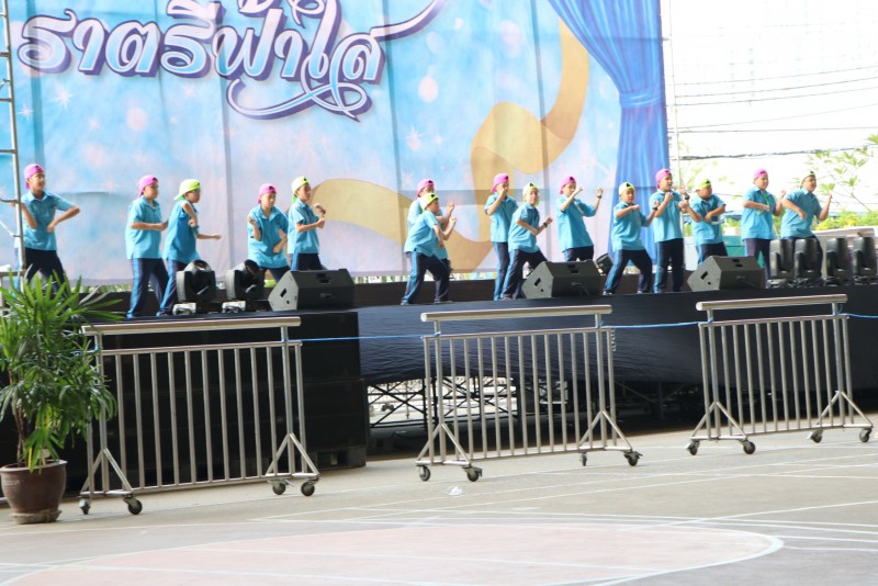 นักเรียนได้แสดงความสามารถบนเวที อันเป็นส่วนหนึ่งในการส่งเสริมทักษะความสามารถ นอกจากนั้นยังเป็นการสร้างบรรยากาศของการมีส่วนร่วมระหว่างครู ผู้ปกครอง นักเรียนและศิษย์เก่าจะได้มีโอกาสพบปะสังสรรค์ และรับประทานอาหารร่วมกัน จึงได้จัดงานราตรีฟ้าใสขึ้น |