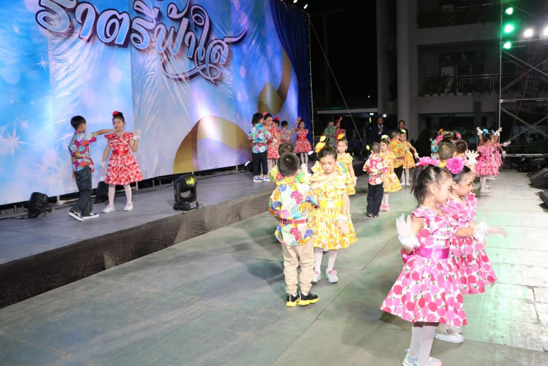 นักเรียนได้แสดงความสามารถบนเวที อันเป็นส่วนหนึ่งในการส่งเสริมทักษะความสามารถ นอกจากนั้นยังเป็นการสร้างบรรยากาศของการมีส่วนร่วมระหว่างครู ผู้ปกครอง นักเรียนและศิษย์เก่าจะได้มีโอกาสพบปะสังสรรค์ และรับประทานอาหารร่วมกัน จึงได้จัดงานราตรีฟ้าใสขึ้น |