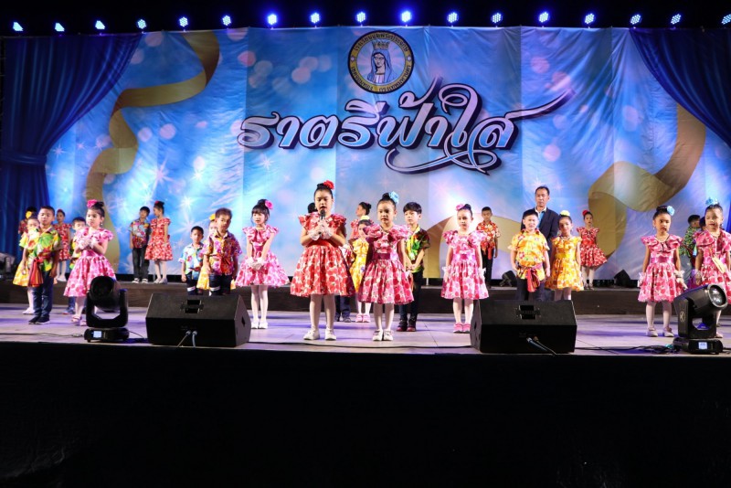 นักเรียนได้แสดงความสามารถบนเวที อันเป็นส่วนหนึ่งในการส่งเสริมทักษะความสามารถ นอกจากนั้นยังเป็นการสร้างบรรยากาศของการมีส่วนร่วมระหว่างครู ผู้ปกครอง นักเรียนและศิษย์เก่าจะได้มีโอกาสพบปะสังสรรค์ และรับประทานอาหารร่วมกัน จึงได้จัดงานราตรีฟ้าใสขึ้น |