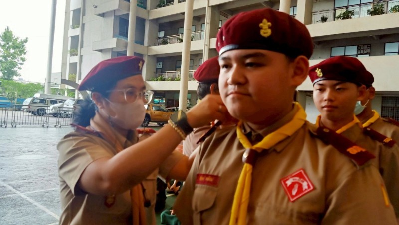 พิธีประดับอินธนูให้กับลูกเสือ - เนตรนารีสามัญรุ่นใหญ่ชั้นปีที่ 2 หลังจากผ่านการฝึกฝนและสอบผ่านหลักสูตรลูกเสือ - เนตรนารีสามัญรุ่นใหญ่ชั้นปีที่ 1 เรียบร้อยแล้ว