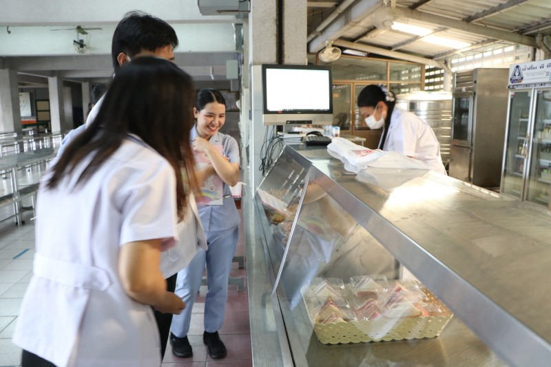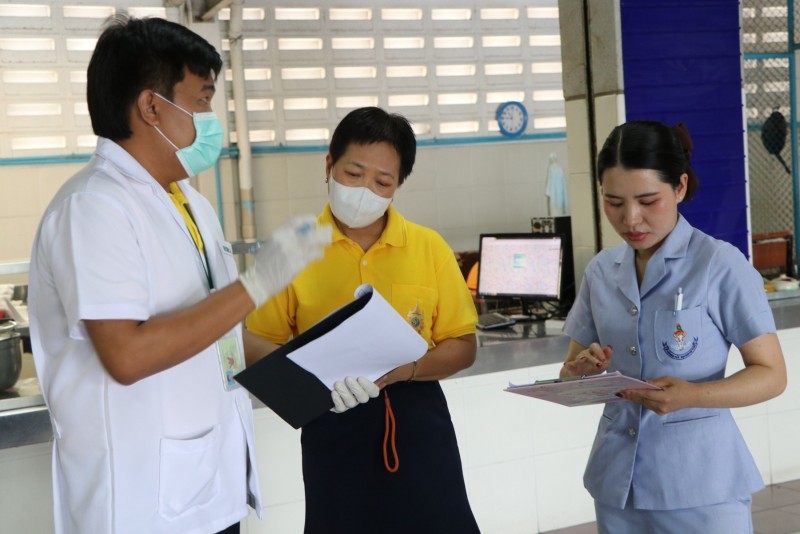 เข้าดำเนินการตรวจสุขลักษณะทางกายภาพของโรงอาหารโรงเรียนแม่พระประจักษ์ พร้อมเก็บตัวอย่างอาหารตรวจวิเคราะห์หาสารปนเปื้อน