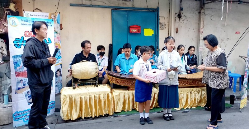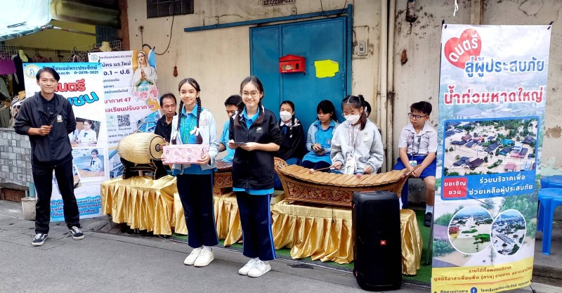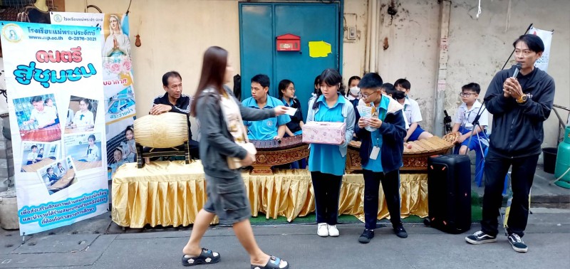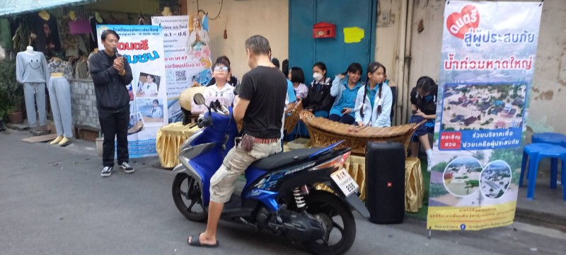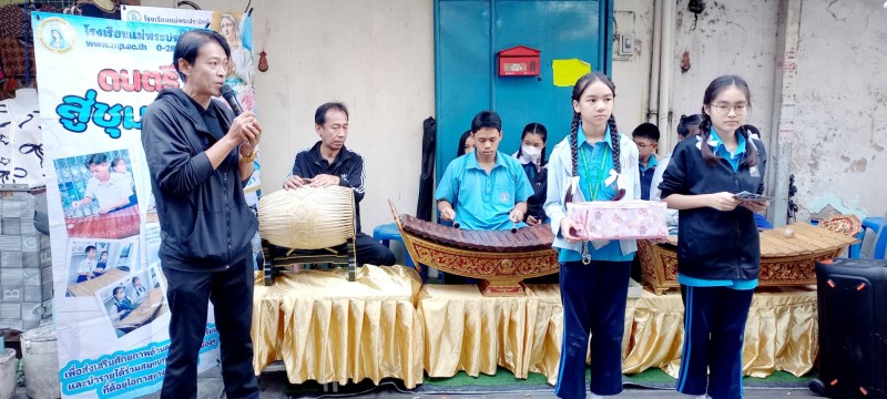 กิจกรรมดนตรีสู่ชุมชนวันนี้ คุณครูมนตรี คุณครูภาณุและเด็กๆชมรมดนตรีไทยโรงเรียนแม่พระประจักษ์ร่วมบรรเลงดนตรีไทย ณ ตลาดซอยอาทิตย์ เพื่อเชิญชวนทุกท่านร่วมบริจาคเงินช่วยเหลือผู้ประสบภัยน้ำท่วม อ.หาดใหญ่ จ.สงขลา