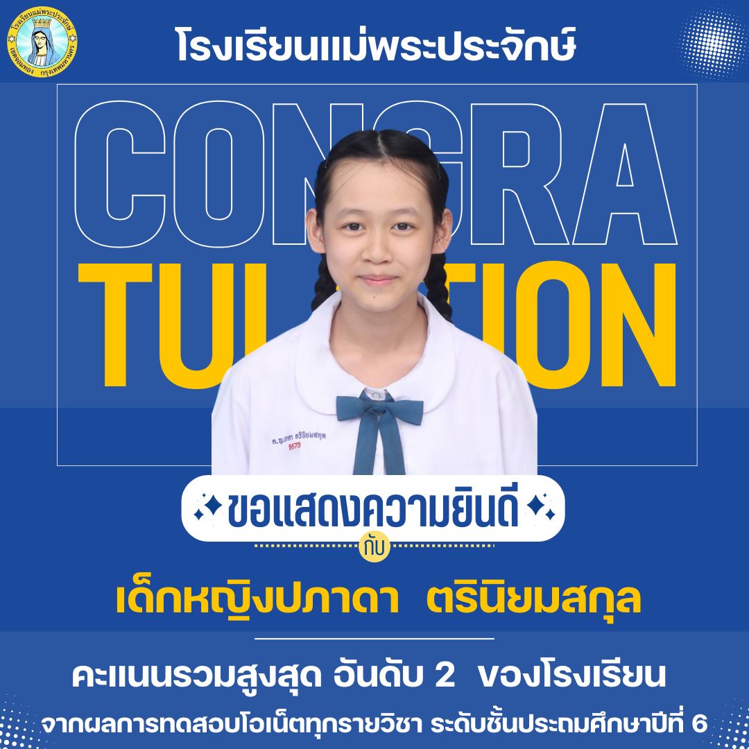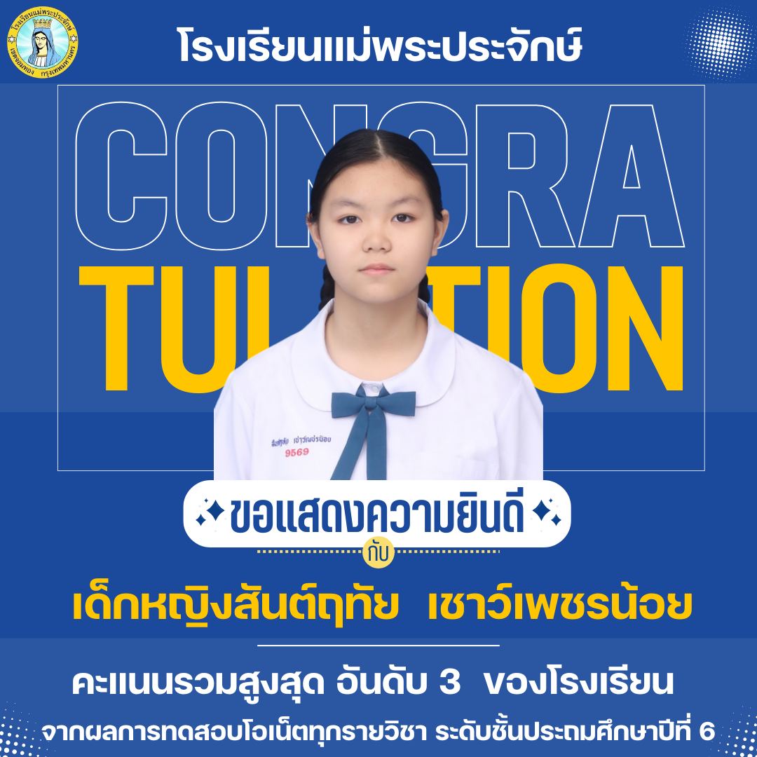 ขอแสดงความชื่นชมยินดีกับนักเรียนที่ได้คะแนนสอบโอเน็ตรวมทุกรายวิชาสูงสุดของโรงเรียน ระดับชั้นประถมศึกษาปีที่ 6 ปีการศึกษา 2567