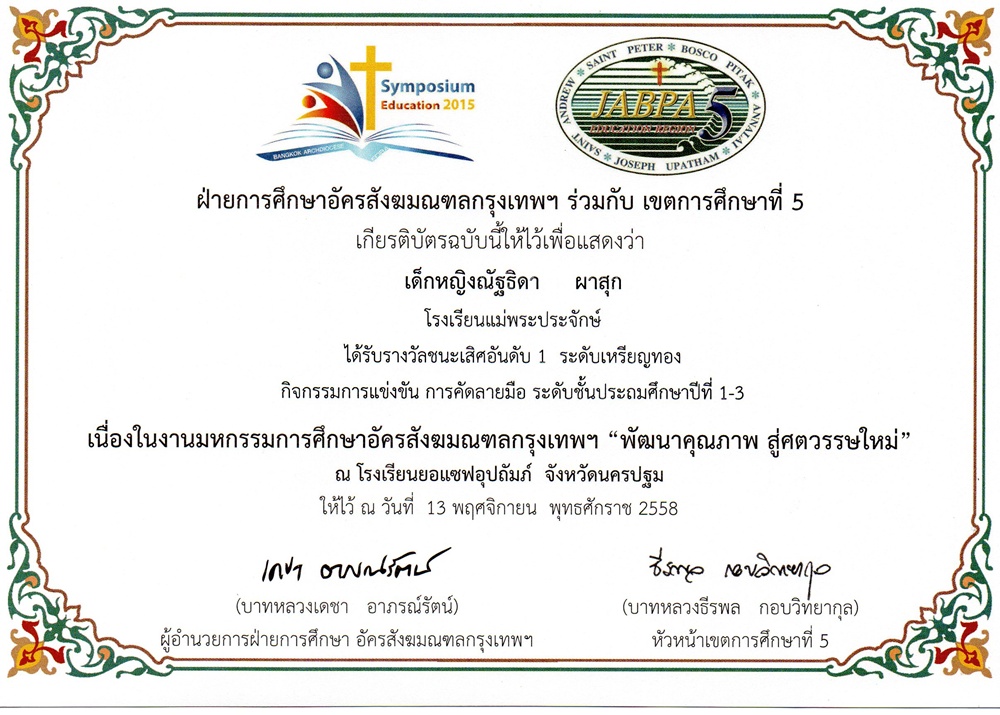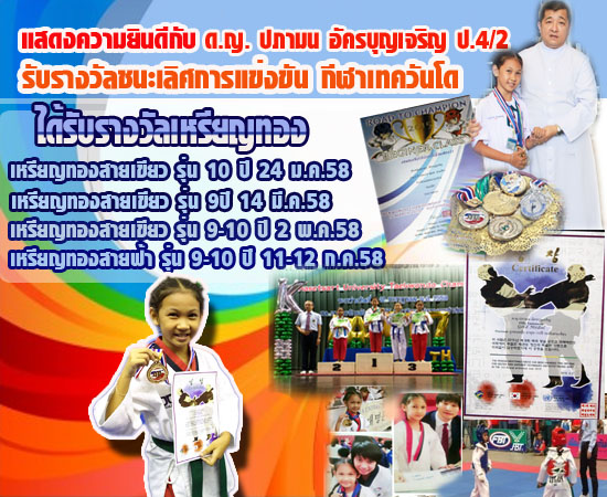ชื่อผลงาน : เข้าร่วมแข่งขัน ยูยิตสู ชิงแชมป์ประเทศไทย ในรุ่่น fighting beginner อายุไม่เกิน 7 ปี น้ำหนักไม่เกิน 25 กก. ณ อาคารนันทนาการ มหาวิทยาลัยรังสิต ผลการแข่งขันได้เหรียญทอง